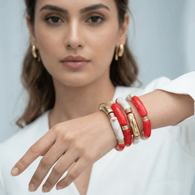 گوشواره آویزدار مرواریدی میناکاری رنگی GMKW1