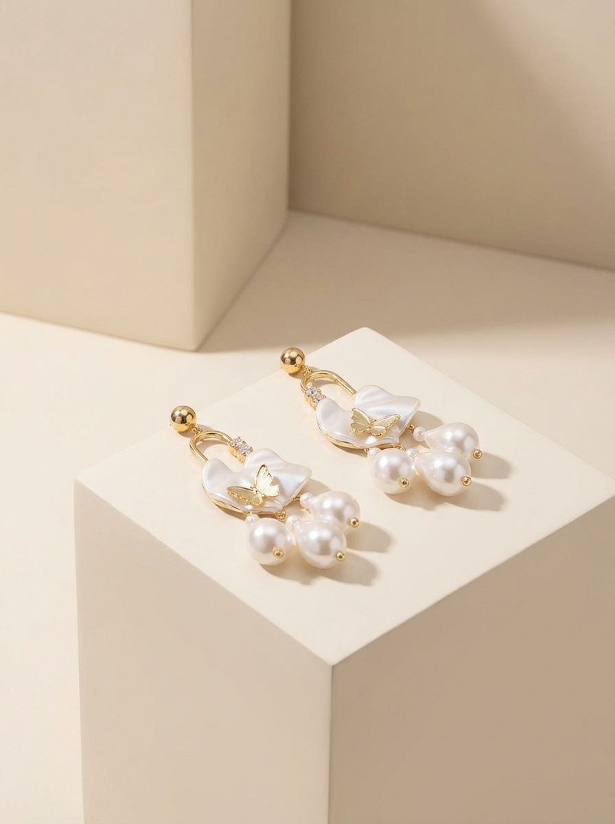 گوشواره مرواریدی طلایی زنانه GMSZ